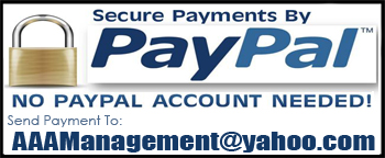 SEND PAYPENT TO: AAAManagement@yahoo.com